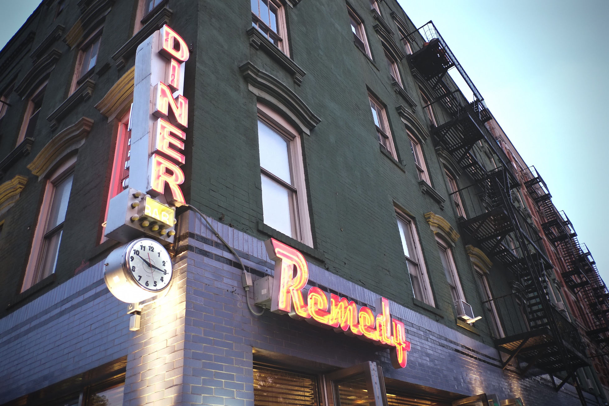 On to the food. I got a cheeseburger and fries, somewhat of a standardized test for judging diners, and though it arrived quite a bit later than I expected, Remedy continued to deliver its little surprising details. The burger (made deluxe and a little expensive by adding fries, tomatoes, lettuce, pickle, and coleslaw) was arranged as if they knew I was going to have to take photographs of it. It even had some sort of green garnish sprinkled on it that made it look extra delicious.